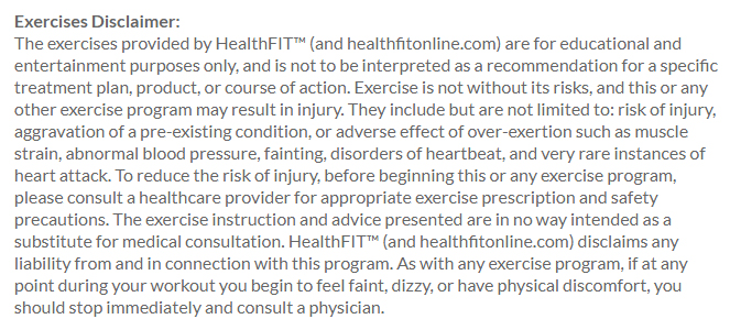 Physical Activity Disclaimer Template
