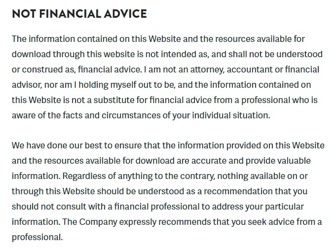 Utilizing a pre-designed structure for these disclaimers offers several advantages. It ensures compliance with legal and regulatory requirements regarding the provision of financial information, mitigating potential legal risks. Furthermore, it fosters trust and transparency with the audience by explicitly stating the limitations of the content. This clarity helps viewers and readers understand that they should seek personalized guidance from qualified professionals for their specific financial situations.