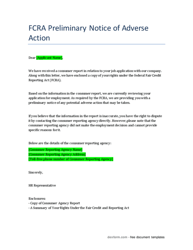 Free editable pre adverse action letter template word -In the electronic age, where instantaneous messaging and emails control communication, the humble letter still holds a special location. Whether for formal business correspondence, individual interaction, or main notices, letters frequently call for a framework that shares clarity and expertise. Letter templates have actually emerged as important tools in this regard, providing a standard structure that simplifies the writing process while making certain consistency and effectiveness.