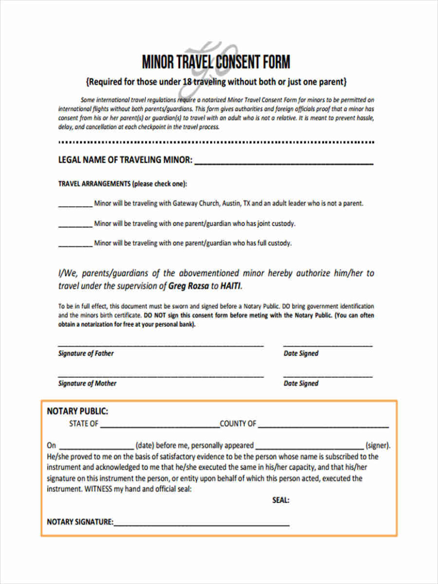 Sample Travel Permission Letter For Minor Template